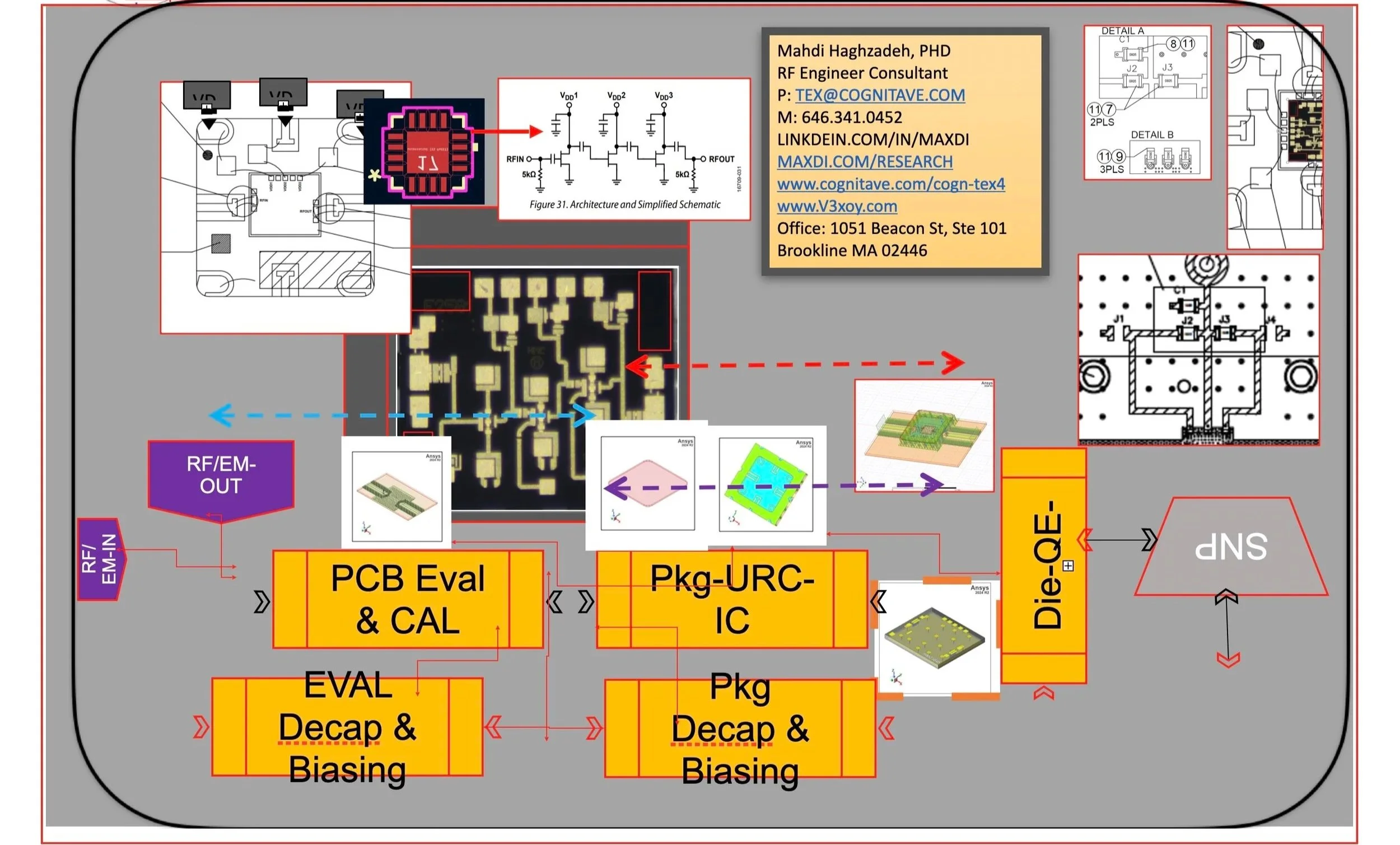 At the innermost level, die-level QE and S-parameter analysis resolve device-level effects and internal coupling mechanisms. These results feed back into higher-level models, closing the loop between die, package, and system domains.